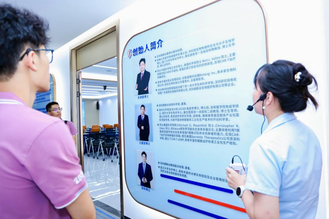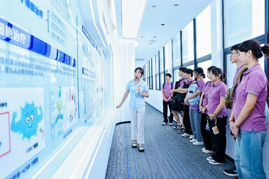 在王露主任细致引介下,同学们参观了智慧展厅,对深圳evo真人视讯战略定位、核心技术、创始团队、历史沿革、企业文化、产业地位、产品管线、专利荣誉等有了全面而深入的分析。其中,作为全国生物技术行业产教融合共同体常务理事单位、深圳市生物医药产教联盟副理事长单位,深圳evo真人视讯不断致力于为细胞与基因治疗各相关企业及组织给予对人才的理论知识、实操技术的相关培训,培养具备GMP工业化生产技能的生产人员及细胞与基因治疗领域专业人才,促进生物医药行业高质量开展。